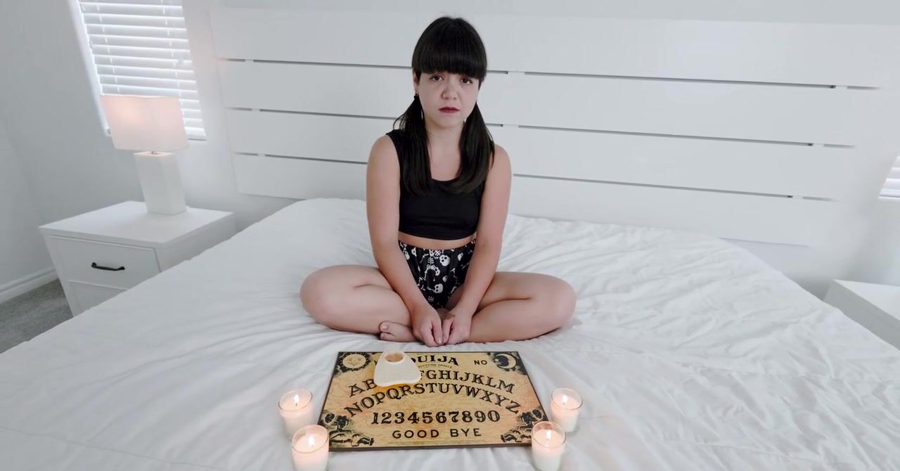 «Милая брюнетка пытается вызвать духом, используя доску уиджи, но у неё ничего не получается, зато у молодой девчонки получается заняться сексом с отчимом. Это уже хорошо, черноволосая милашка радуется, когда папочка угощает её твердым членом. Девка с маленькими сиськами берет хуй в ротик и отдается ему в бритую киску, получая удовольствие. Мужик поимел девку в разных позах и залил живот проказницы спермой.»