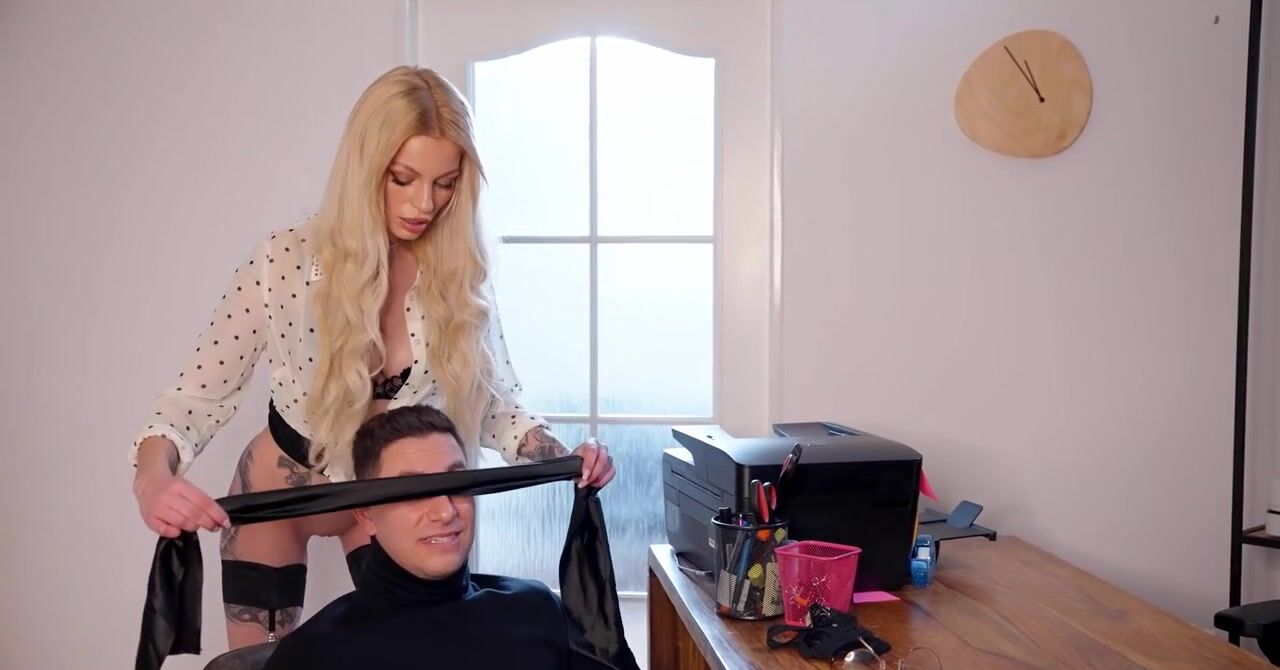 «Красивая начальница в возрасте устает от работы, поэтому завязывает глаза подчиненному и ведет его в спальню. Под вполне строгой одеждой у неё оказывается латексное бельё, которое очень сексуально смотрится на неё упругом теле. Белокурая руководительница соблазняет парня на спонтанный секс. Сперва ему приходится вылизать бритую пизду милфы, что он делает с огромным кайфом, а потом чел принимается трахать бестию.»