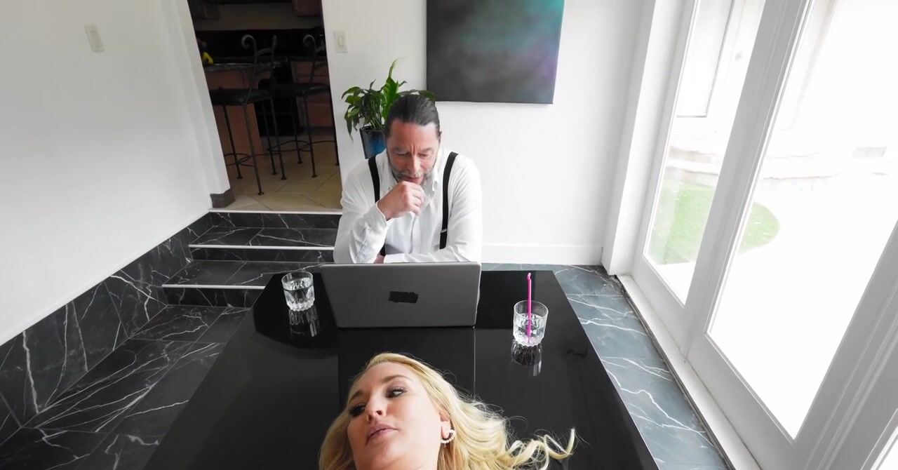 «Белокурая мачеха очень занята, но несмотря на эту занятость она всё равно находит возможность заняться сексом с пасынком. Парень может достать член в любое время и подсунуть ей его под нос, зрелая блондинка сразу же берется делать минет, не отвлекаясь от работы и домашних дел. Она ещё и в пизденку отдается. Делает мамочка это на столе, она расставляет ноги перед молодым пацаном и наслаждается половым актом.»