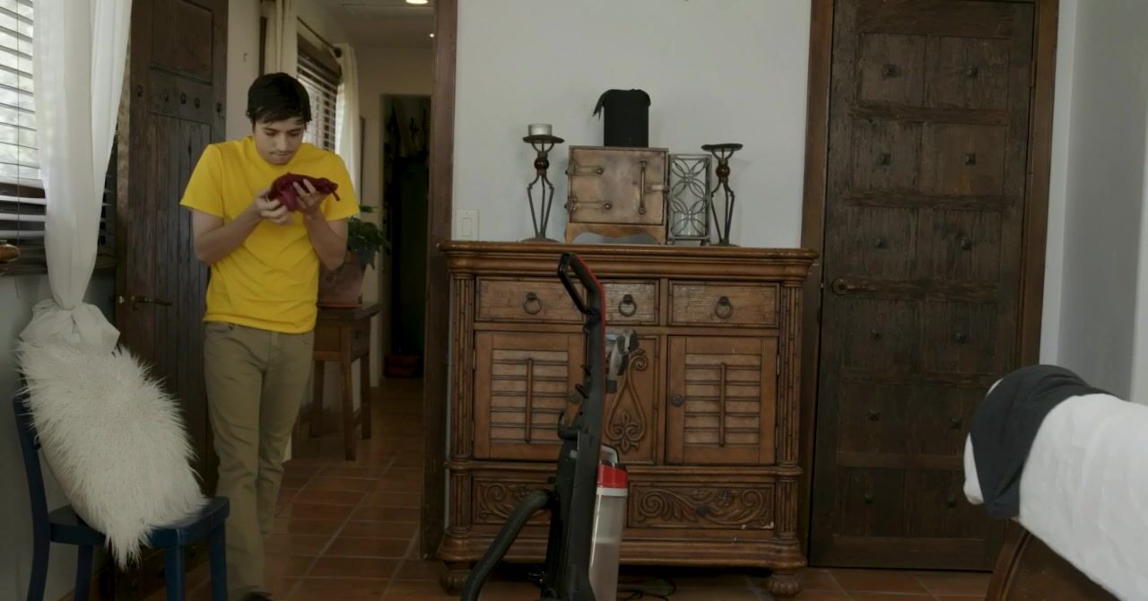 «Мачеха снова застает пасынка в своем шкафу за нюханьем трусиков. Пацан надел её бельё себе на голову и дрочил. Раньше она злилась на пасынка за это, а сейчас сама возбуждается. Приятно знать, что от тебя так сильно возбуждается молодой парень. Короче говоря, опытная милфа отдалась ему и сделала прекрасный минет. Мамочка с силиконовыми сиськами удовлетворила молодчика, ну и сама получила удовольствие, конечно же.»