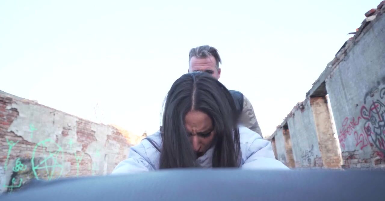 Милая девушка в белой курточке отдается мужику за деньги