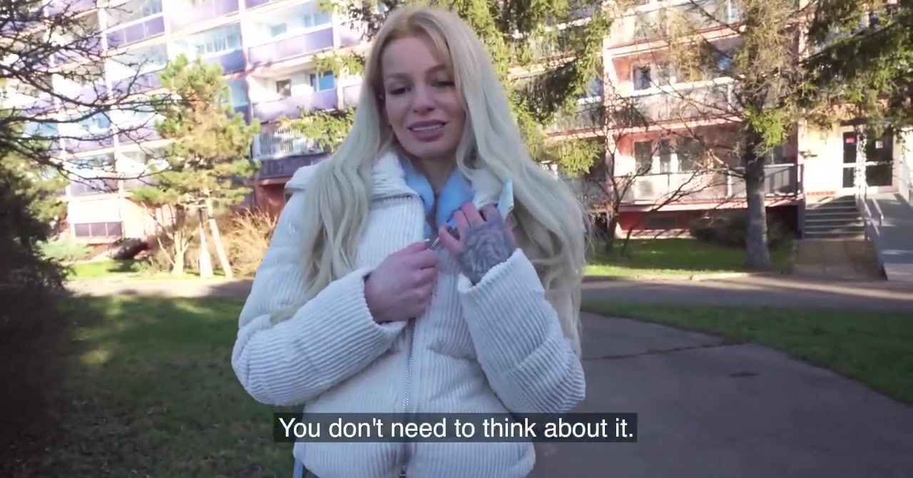 «Если хочется посмотреть на упругие сиськи блондинки, то придется за это щедро заплатить. Но мужик готов выложить приличную сумму, ему совсем не жалко. Белокурая цыпочка получает деньги и показывает грудки прямо на улице. А когда сумма увеличивается в несколько раз, девчонка опускается на колени и принимается делать глубокий минет. Она сосет толстый хер и отдается в бритую пизду, разрешая в неё кончить.»