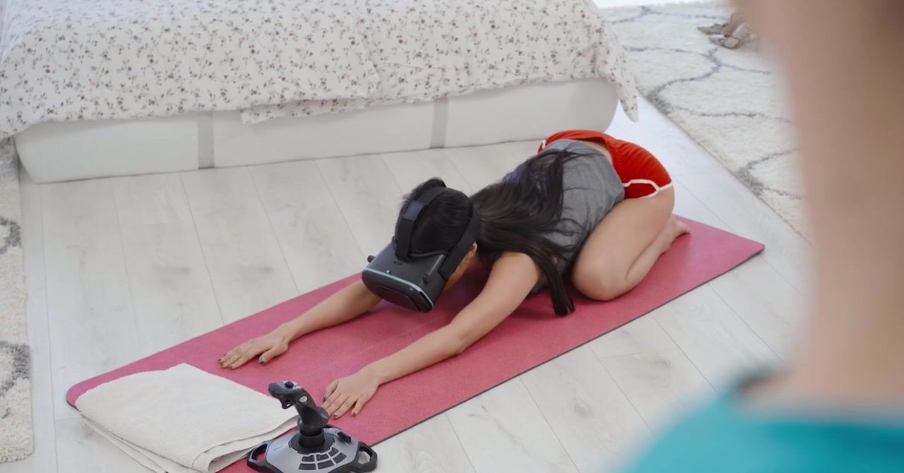 Азиатка Emiri Momota в VR очках соглашается на секс