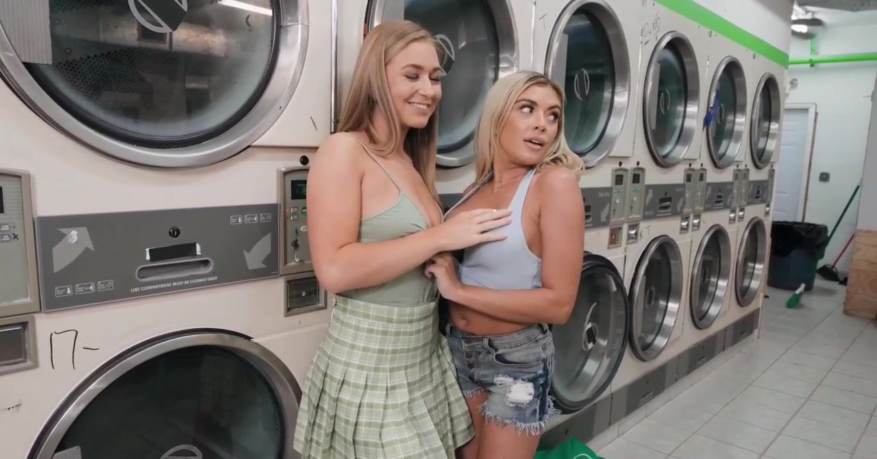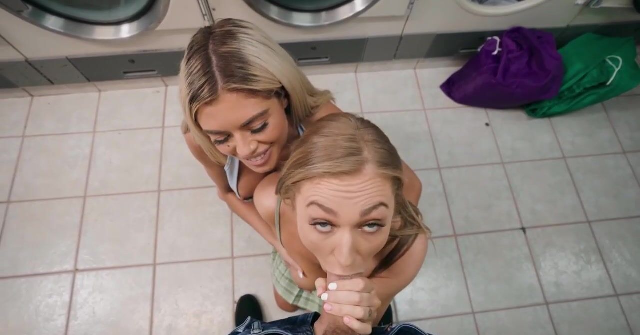 «Пока вещи стираются, нужно чем-то себя занять, чтобы не скучать. Поэтому привлекательная блондинка в прачечной и соблазняет молодого паренька на спонтанный секс. Эта жаркая девчонка с натуральными сиськами опускается перед ним на колени и принимается смачно сосать. Минет она делает прекрасно, но есть кое-что, что проказница делает ещё лучше. Она отдается малознакомому молодчику в попку и кайфует от анала.»