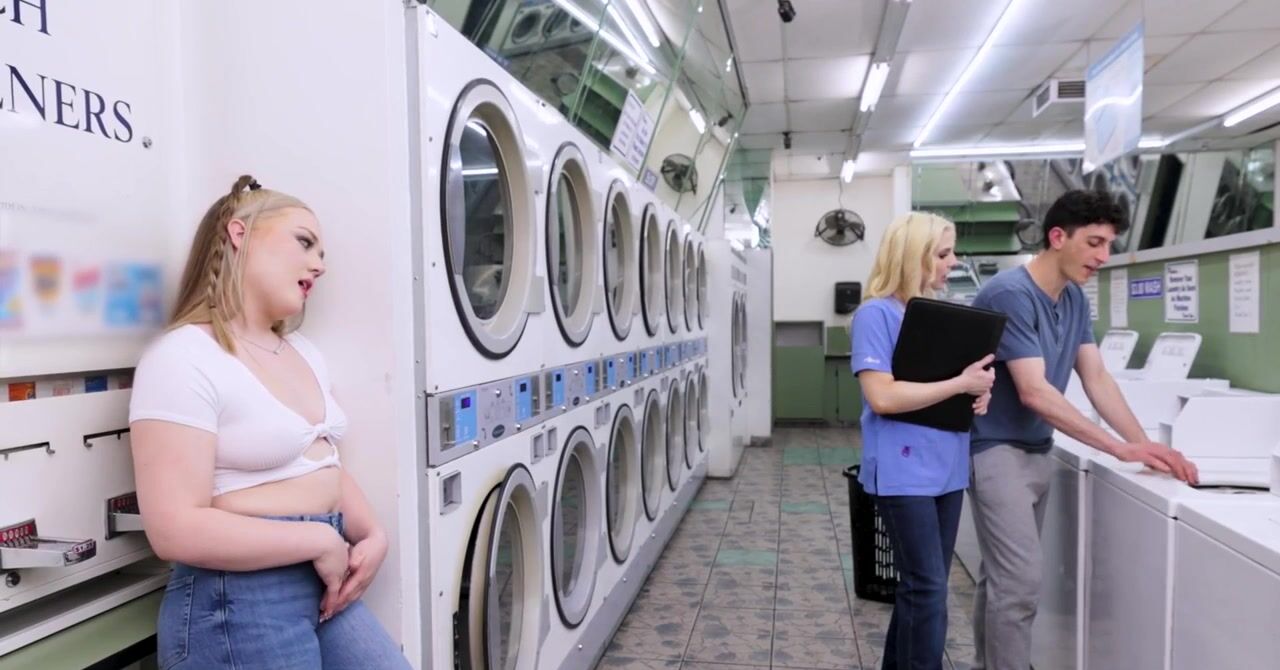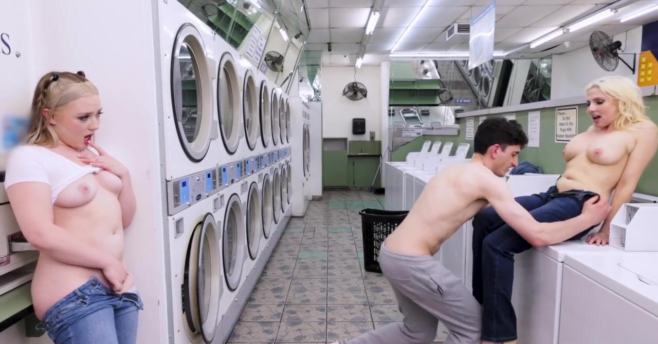 «Молоденькая девушка с милым личиком становится свидетельницей секса в прачечной и безумно возбуждается. Она видит как белокурая милфа соблазняет паренька и наслаждается кунилингусом от него, а потом делает минет и отдается в бритую пизду. Молодая блондинка не выдерживает, она решает присоединиться, чтобы поучаствовать в разврате. Молодой пацан с удовольствием поимел двух цыпочек и кончил им на лица.»