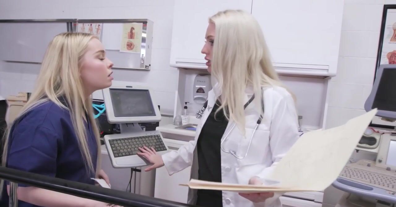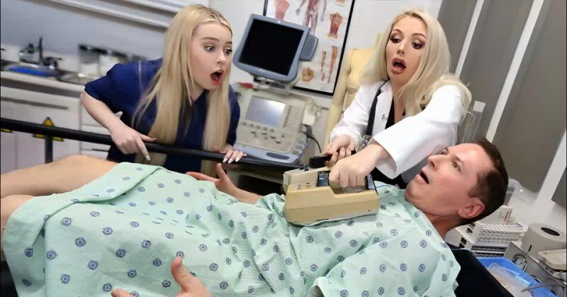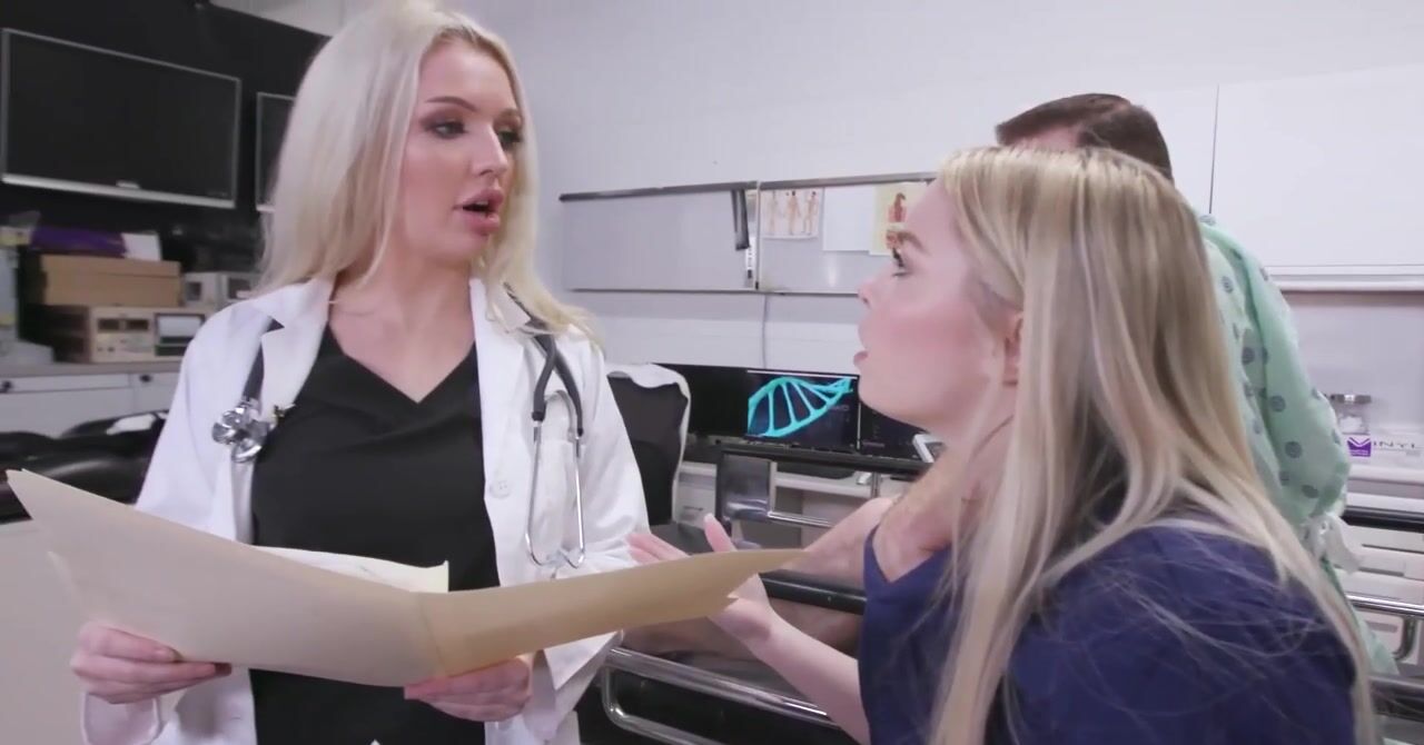 «Состояние больного быстро стабилизируется после операции и теперь ему хочется заняться сексом. Мужик имеет такую возможность, зрелая докторша и молодая медсестра не возражают против интима. Две эти белокурые цыпочки принимаются отсасывать член пациента и отдаются ему в бритые киски по очереди. Довольный самец насладился их щелками как следует, а кончить захотел на привлекательные лица, возражать медицинские работницы не стали.»