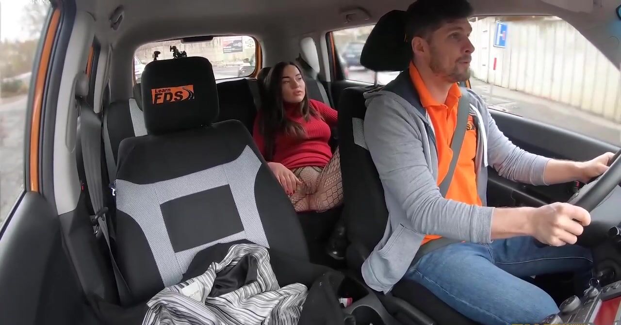 «Девка возбуждается во время урока вождения и поэтому перелезает на заднее сидение, чтобы там подрочить. Черноволосая цыпочка снимает колготки в сетку и принимается пальцами теребить свою бритую пизду, не сдерживая стоны. Не трудно предсказать, что своими действиями она возбуждает водителя, которому предлагает развлечься. Брюнетка сделала инструктору минет и отдалась в пизду, а тот залил её киску спермой.»
