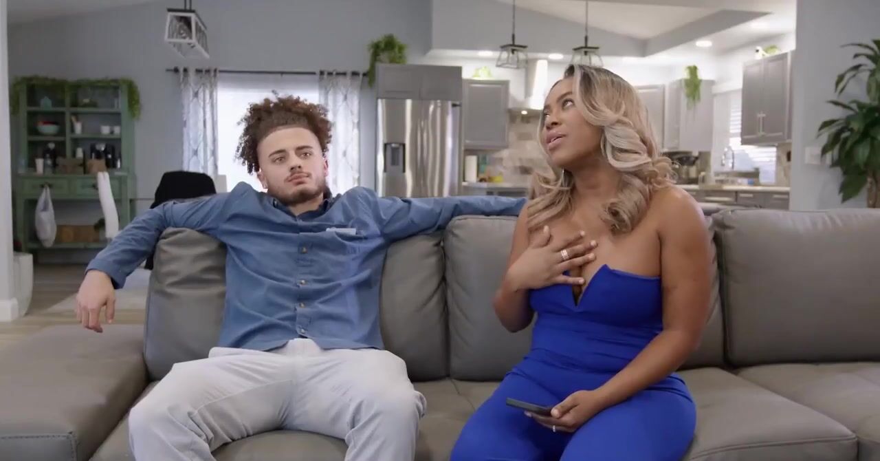 «Зрелая негритянка со светлыми волосами встречает курьера в обнаженном виде. Она намерена заняться с ним сексом и этим расплатиться за доставку. Деньгами было бы намного дешевле, но дело в том, что чернокожая развратница уже давно не трахалась и соскучилась за интимом. Сперва мамочка взялась смачно сосать член молодого пацана, а потом отдалась в пизду на диване. Чел её поимел страстно и довел до оргазма.»
