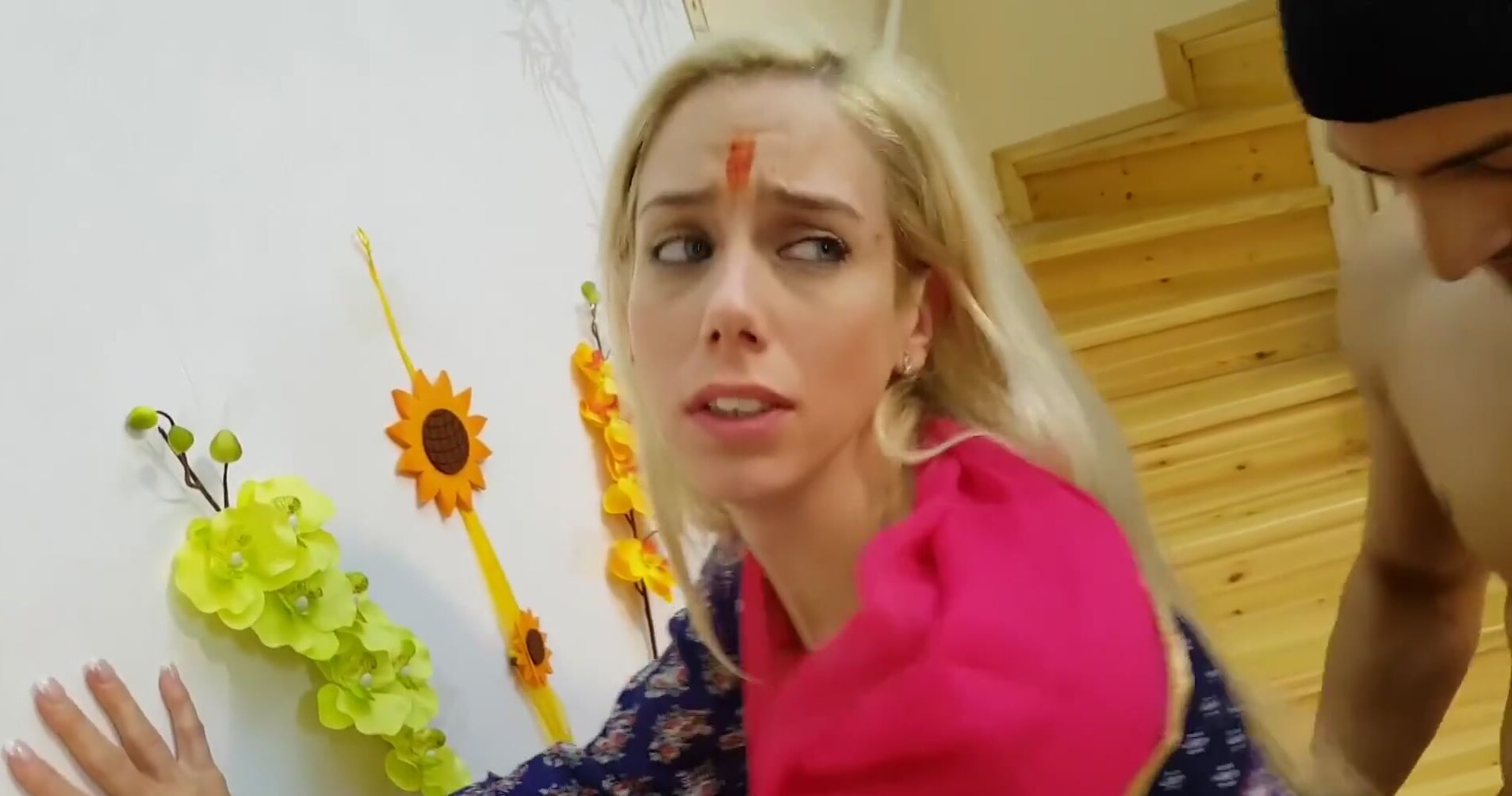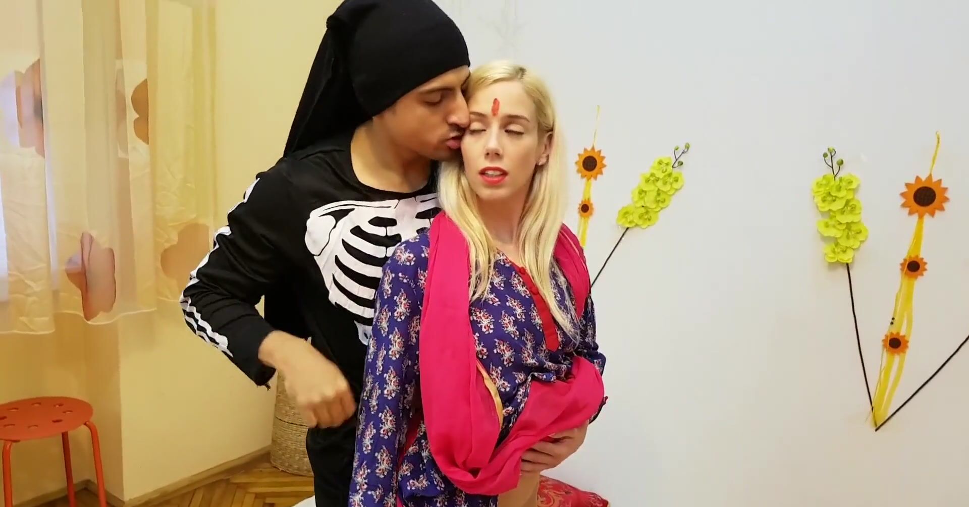 «Белокурая европейка захотела просвещения и поэтому попала в индийскую секту. Как оказалось, там её ждал только секс. Но это уже неплохо, стройная милашка насладилась развратом по полной программе и кончает от больших членов. Трахает её гуру и его помощник. Особенно сильно худышка кайфует от МЖМ. Ей безумно нравится сосать и одновременно наслаждаться хуем внутри влажной киски. А сперму телка принимает на красивое лицо.»