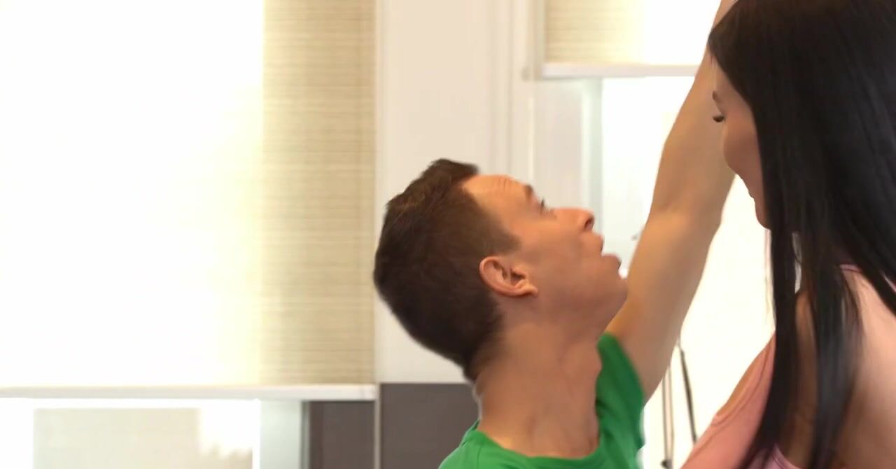«Сексуальная мачеха с большими натуральными сиськами, которые имеют красивую форму, решается на секс с пасынком и отдается ему в бритую писю сперва на кухне, а потом и на диване в гостиной. Эта смазливая милфа дает вылизать киску на кухонном столе и берет в ротик крепкий член паренька, старательно работая своим ротиком. Брюнетке безумно понравилось как сосать, так и трахаться, пасынок оказался прекрасным любовником.»