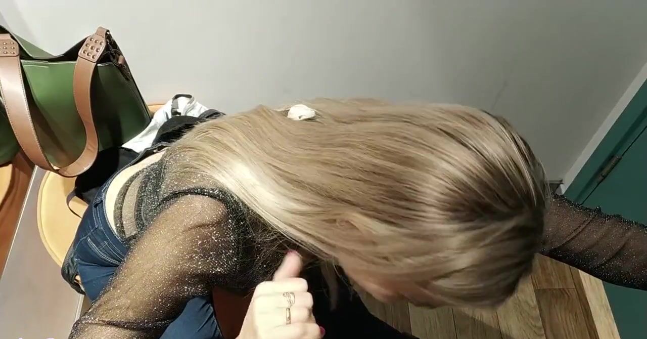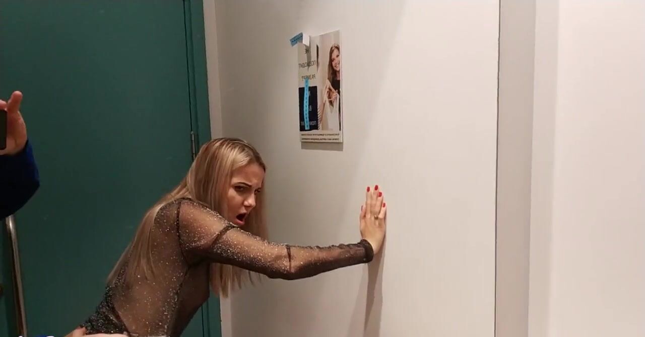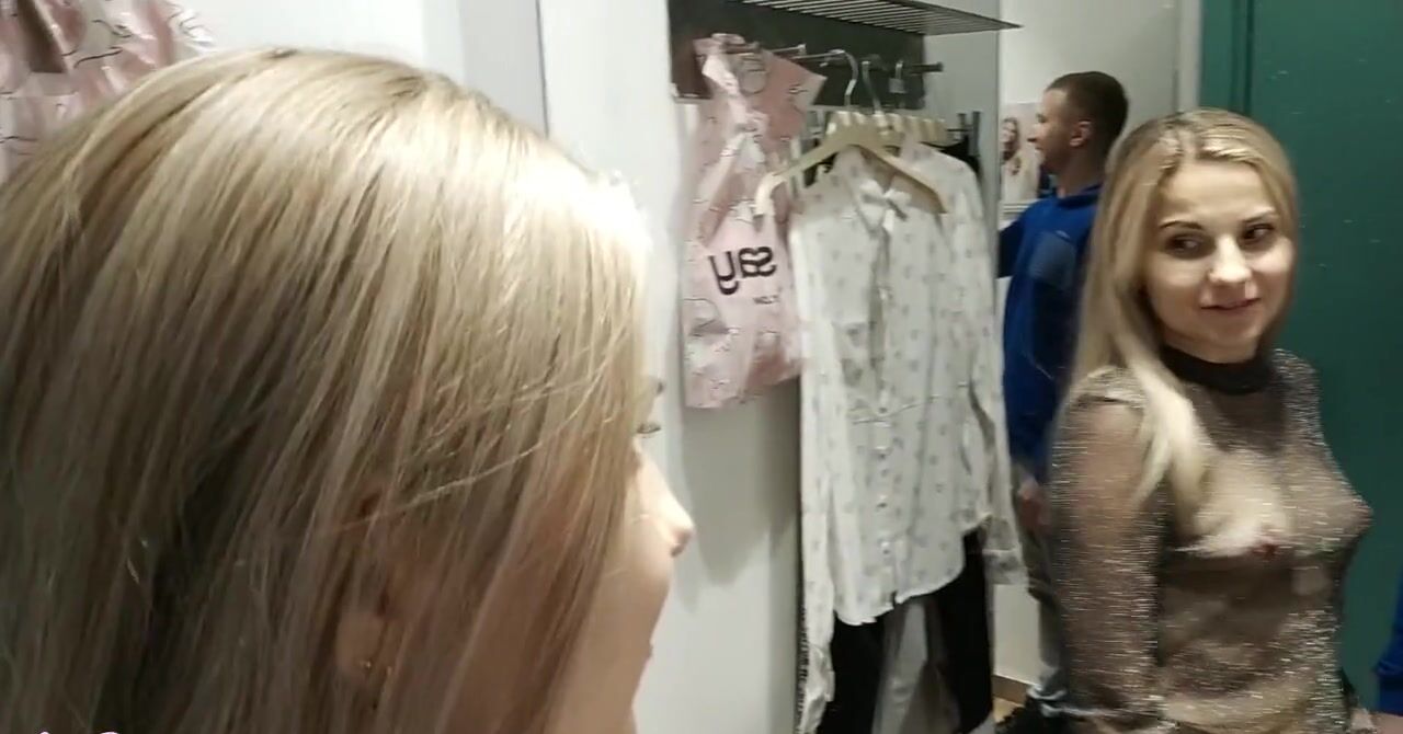 «Девушка знает как бойфренду не нравится ходить вместе с ней по магазинам, поэтому она благодарит его за компанию, предлагая заняться сексом в примерочной магазина. Там блондинка примеряет прозрачную кофточку и видит, что парень возбуждается, поэтому она и принимается его ублажать. Сперва цыпочка сосет твердый хуй, стоя на коленях, а потом спускает с себя штаны и встает раком, отдаваясь в мокрую пизду.»