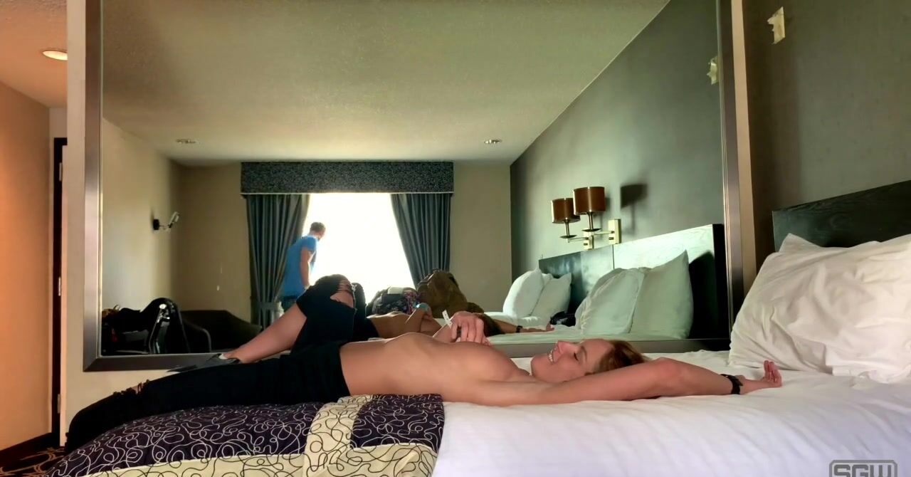 «Пара заселяется в отель и первым делом занимается страстным сексом. Они не успевают даже вещи разобрать, им хочется насладиться интимом после долгой дороги. Парень раздевает рыжую девушку и вылизывает её бритую киску на кровати, после чего предлагает сделать ей глубокий минет и жарко трахает крошку. Пара насладилась друг другом по полной, им безумно понравилось и они кайфонули, а закончилось всё кремпаем.»