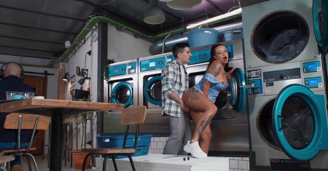 Пока муж работает в прачечной за ноутом, жена трахается с другим