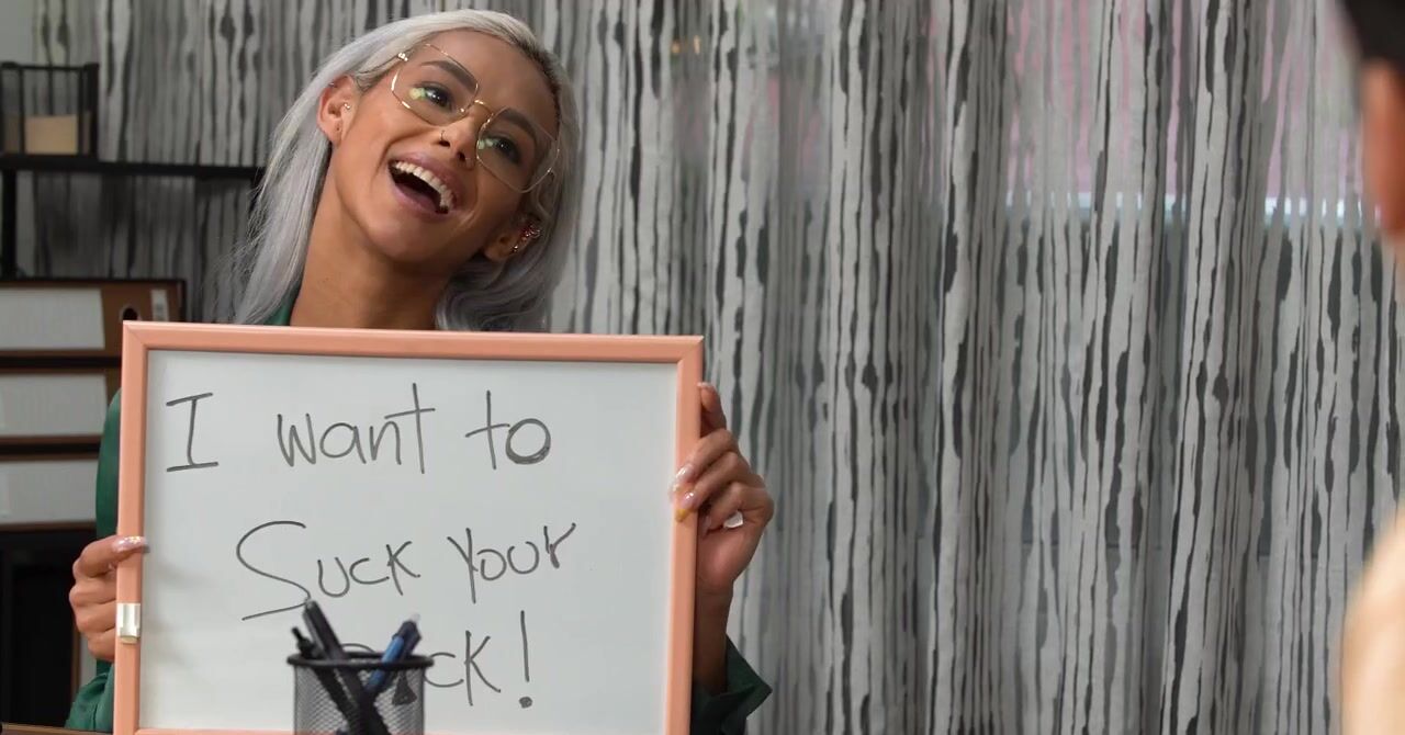 «Красивой коллеге хочется заняться сексом в офисе, она не может работать, думает блондинка только о ебле и твердых членах. С этим нужно что-то сделать, а иначе она просто не выдержит, у неё будет нервный срыв. Поэтому жаркая латинка в очках и соблазняет коллегу на интим, показывая перед ним своё сексуальное тело. Жаркая проказница овладевает крепким членом и ебется на столе, получая желанное наслаждение.»