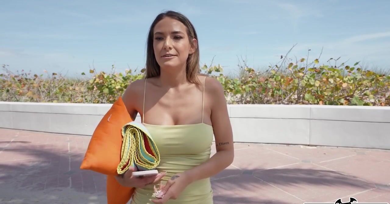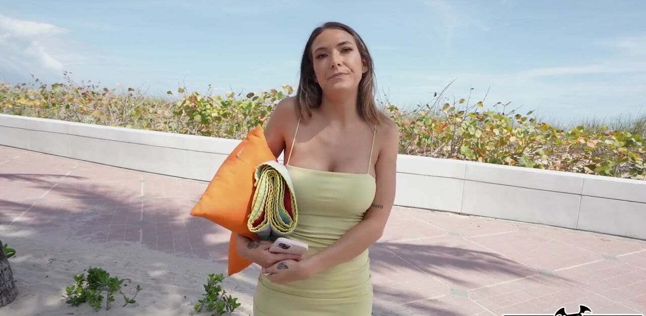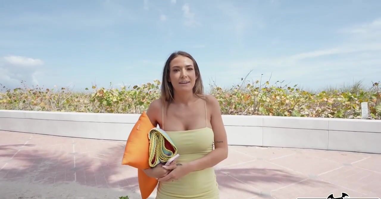 «Белокурая красотка в обтягивающем платье шла на пляж, собираясь весь выходной проваляться на песке и позагорать. Но у молодого пикапера при деньгах есть предложение получше. А что если блондинка с силиконовыми сиськами займется с ним сексом в фургоне за большую сумму денег? Цыпочка соглашается и принимается смачно отсасывать его крепкий член, а затем отдается в бритую киску. Ей даже нравится торговать своим телом.»