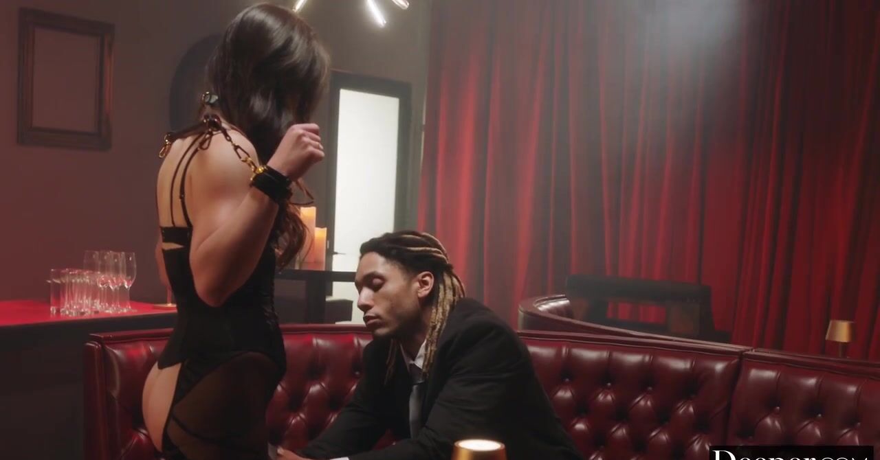 «Барменша в сексуальном белье и наручниках обслуживает чернокожего клиента и не только готовит ему коктейли. Вот такой БДСМ ей самой безумно нравится, девушка нереально возбуждается, ей явно по кайфу подчиняться. Эта черноволосая бестия с красивым телом уже вскоре принимается делать негру смачный минет и отдается в узенькую киску. Она сделает всё возможное, чтобы удовлетворить его сексуальные желания.»