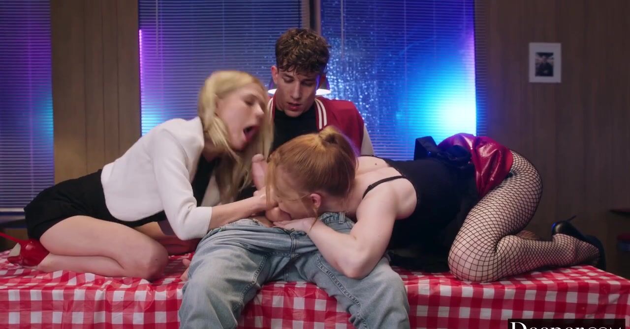 «Решили выяснить отношения раз и навсегда и поэтому встретились в кафе. У них любовный треугольник — две милые девушки и один парень. Пусть он решает, с кем хочет встречаться. Но чувак предпочитает брать от жизни всё, он хочет остаться с двумя телками и предлагает им полиаморные отношения. Начать можно прямо тут, ведь в ресторане уже не осталось посетителей и они вполне могут трахнуться прямо на столе. Телки согласны.»