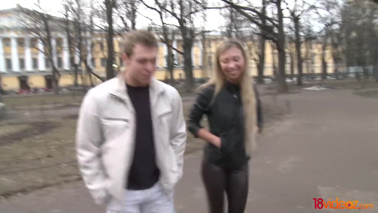 «Длинноногая русская блондиночка, эротично виляя аппетитной попкой, мило щеголяла одна по улице, привлекая на себя взоры парней. Один из кавалеров не стал упускать возможности познакомиться с ней поближе, и после непродолжительного пикапа, его настойчивость оправдалась. Как только они пересекли порог его квартиры, жеребец сразу закинул подругу на диван, начав страстно сбрасывать с красивого женского тела всю одежду. Обнажившаяся краля для начала поработала ротиком, после чего повернулась к партнеру спиной, и отдалась во все дыры, особое удовольствие испытывая во время анального секса.»