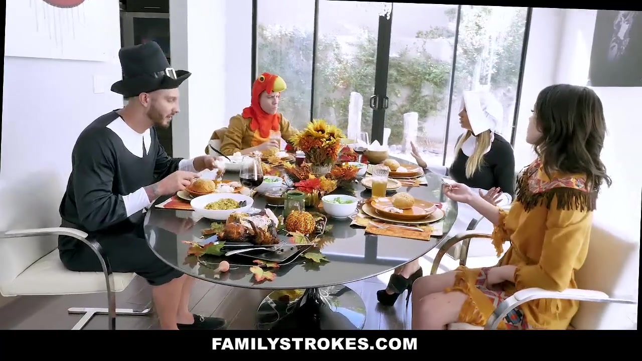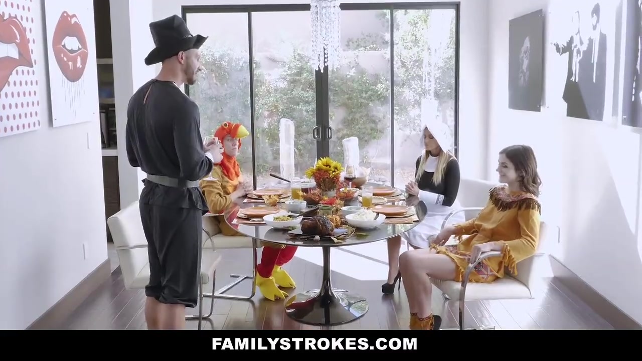 «Похотливые ребята решили устроить зачетную оргию, при этом придумав отличную ролевую игру, в которой им предстоит переодеться в разнообразные костюмы. Данная идея им всем пришлась по вкусу, и как только они уселись за стол, малышка сразу приступили к действиям. Одна из красавиц в костюме служанки запрыгнула под стол, в тот момент когда ее подруга в наряде коренной американки, поглядывая за процессом подготавливала щелку пылкой мастурбацией. Возбудившиеся до придела пихари в разгаре прелюдии раздели девиц догола, после чего отодрали грудастых красавиц до изнеможения.»